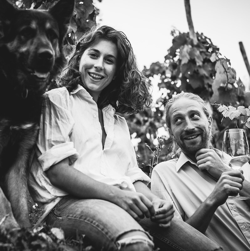 In a tiny southern village in Germany, nestled within the forests, lies a breathtaking amphitheater of terraced banks, where slopes of shell limestone are steep, sun-drenched, airy, open, and ideally suited for Riesling. It is here, in Rosswag, Württemberg, just 20 miles north of Stuttgart where winemaker Olympia Hoffman and husband "Hannes" Hoffman of Weingut Roterfaden call home. Samara, originally from Greece, and Hoffman, from Rosswag, met at enology school at Geisenheim and never looked back. Roterfaden means “red thread” which represents how their different backgrounds and experiences come together, and is the name of their winery. What makes Samara so happy about winemaking and farming is, “the freedom of working with nature. You experience all the seasons. Somehow, you know that nature will be the one to decide everything. You don't have the upper hand, so you just let go… It gives you freedom knowing that there's something much bigger there, that gives the thread to everything else and you are part of it.”